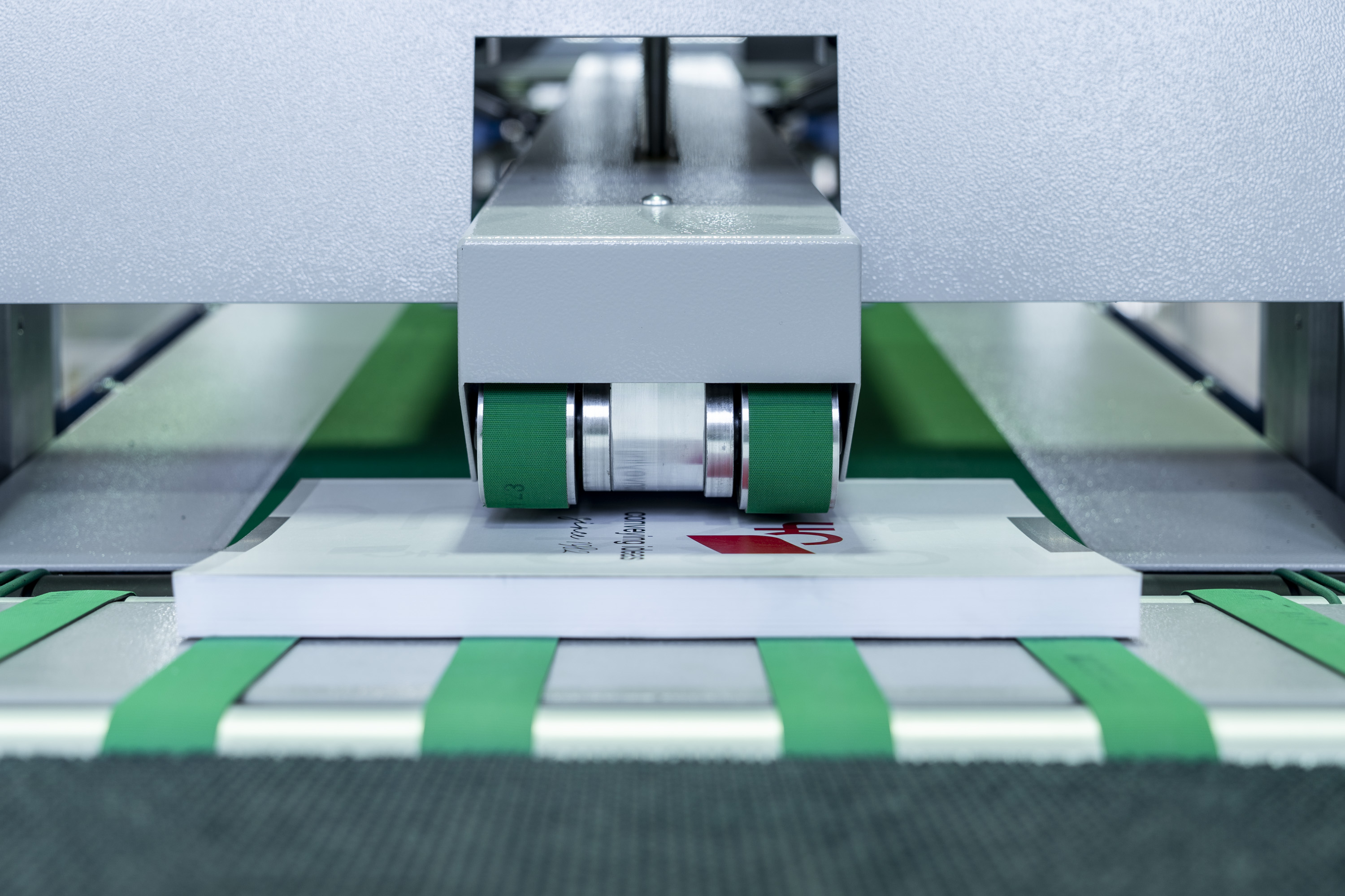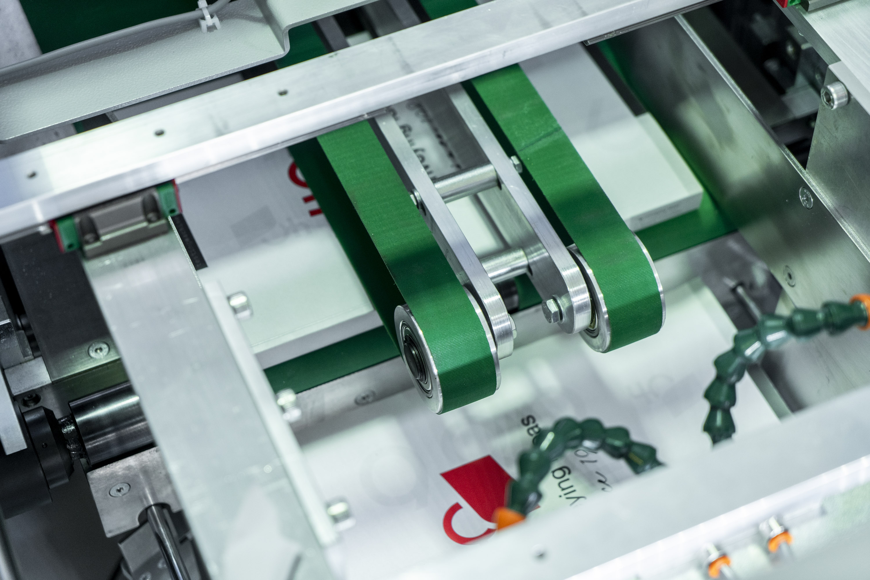 The automatic stacker’s upper belts can be easily adjusted according to product thickness using a convenient control handwheel, providing maximum adaptability to various formats.