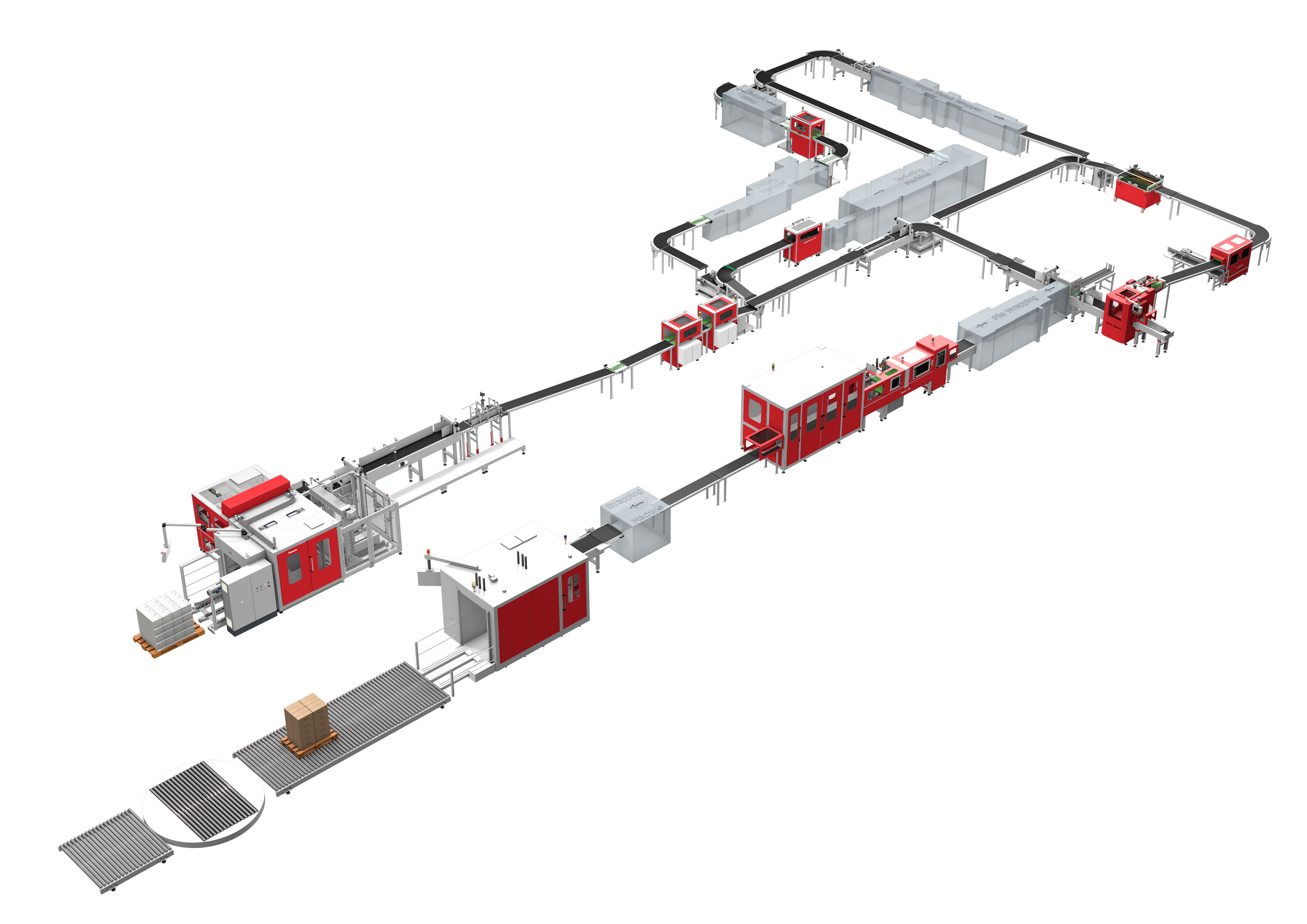 Solema Packaging Line is an industrial processing line specifically dedicated to the Finishing phase in the Graphic Arts sector.