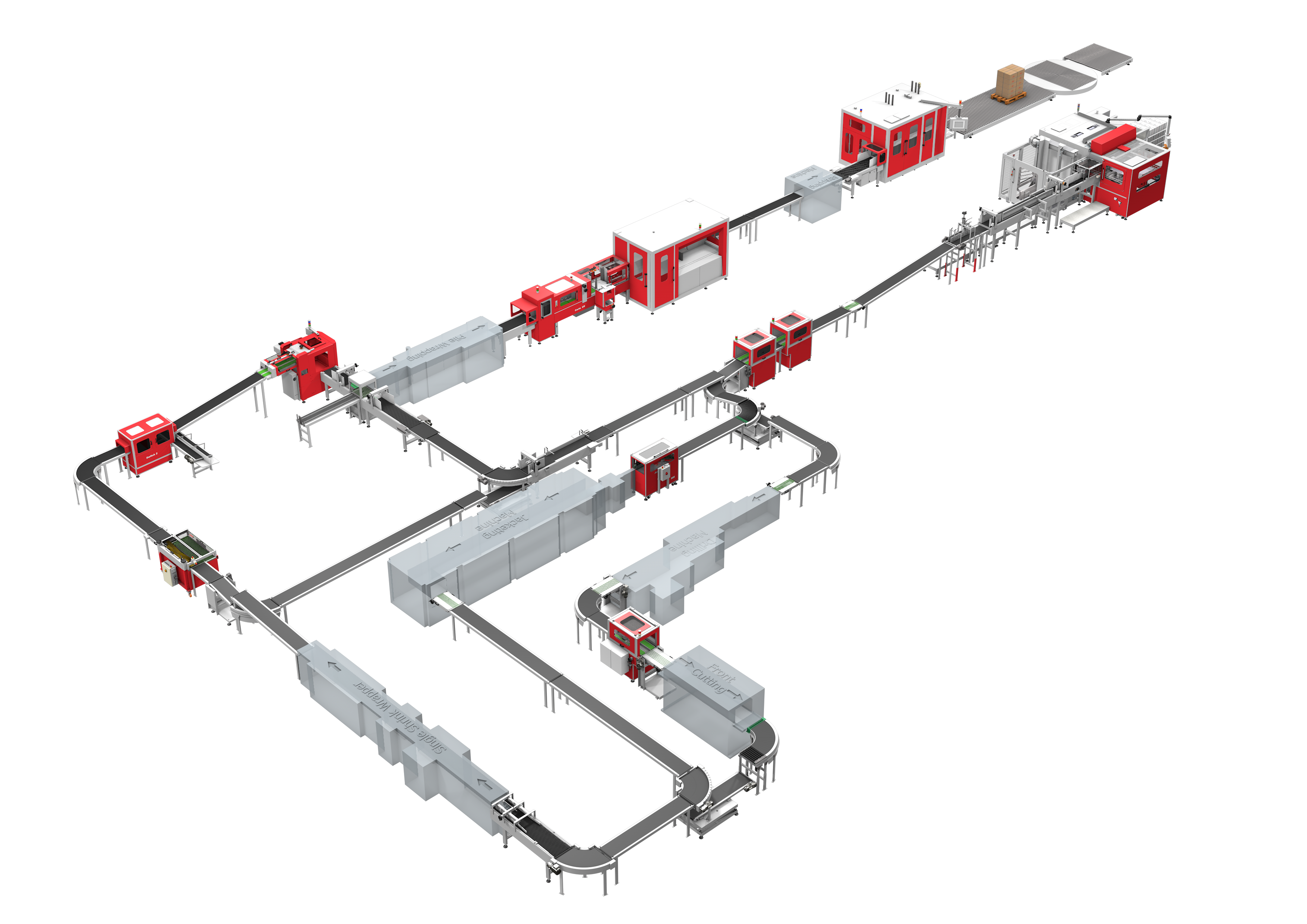 Solema designs a taylored Packaging line layout for its customers. Starting from the space available for line installation footprint and all the different customer's production needs, Solema is able to provide the right solution. Installing in line all the finishing machines allowing to the customer the maximum production flexibility is the key. Unlimited finishing processes will be permitted to our customers with Solema Packaging line.