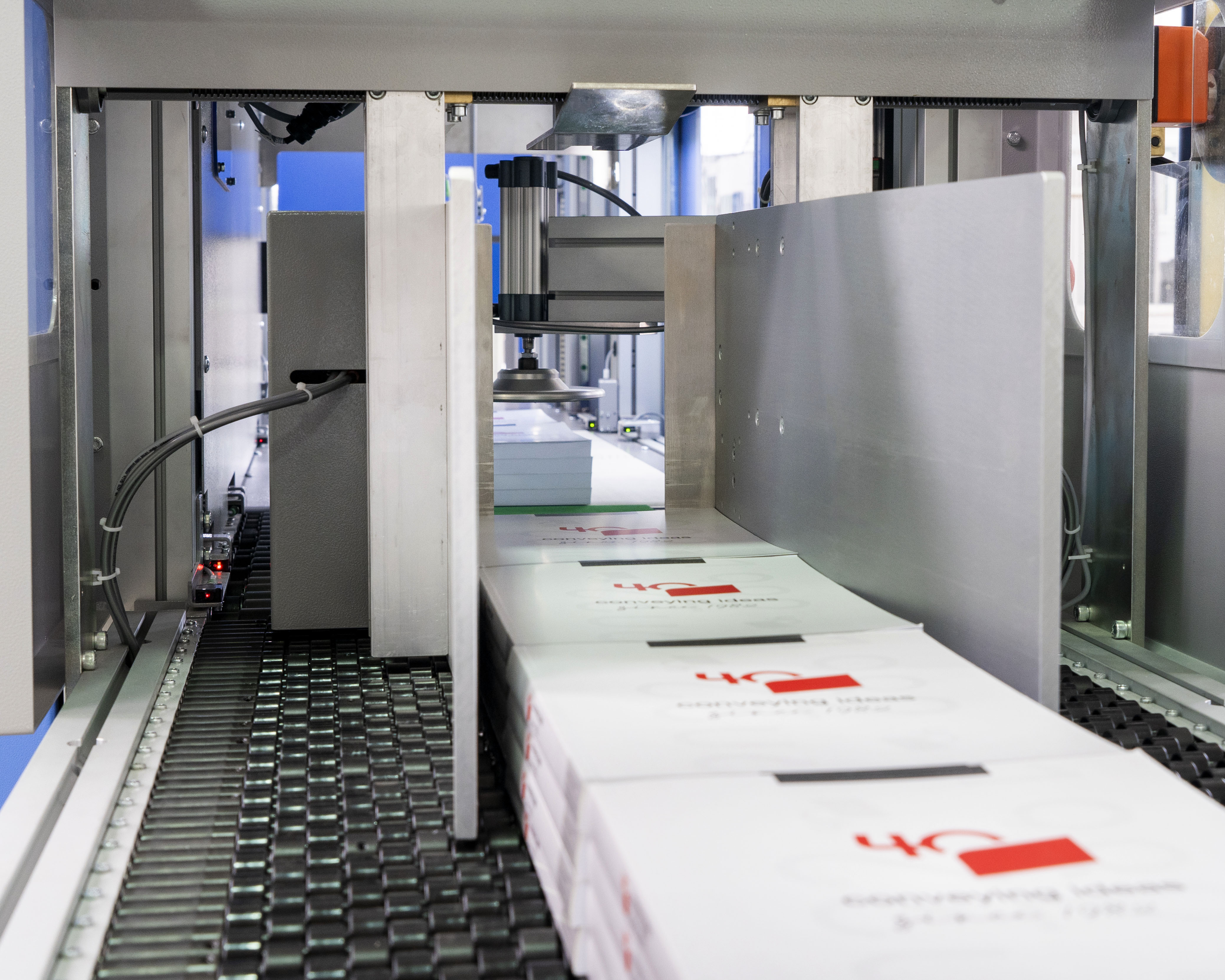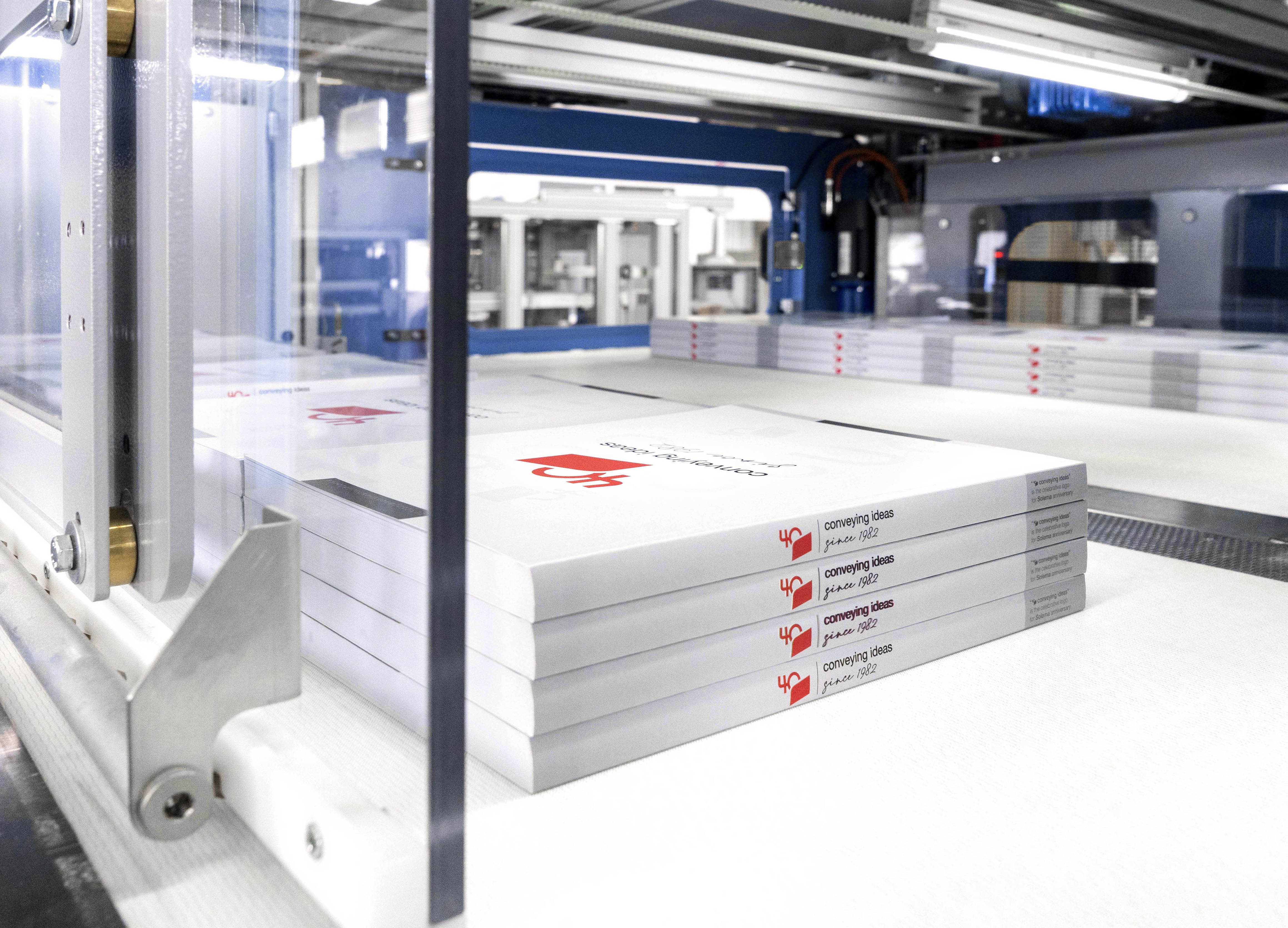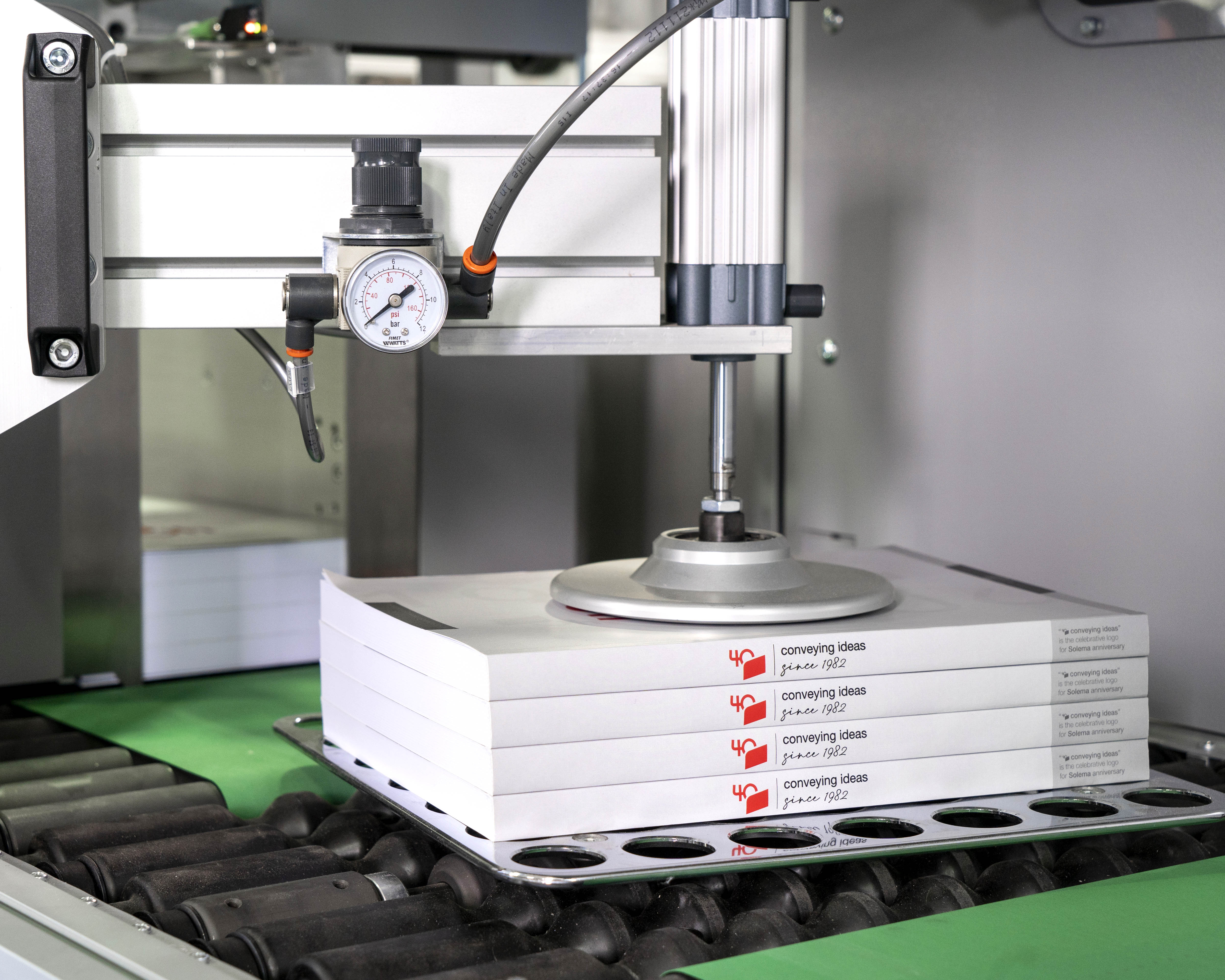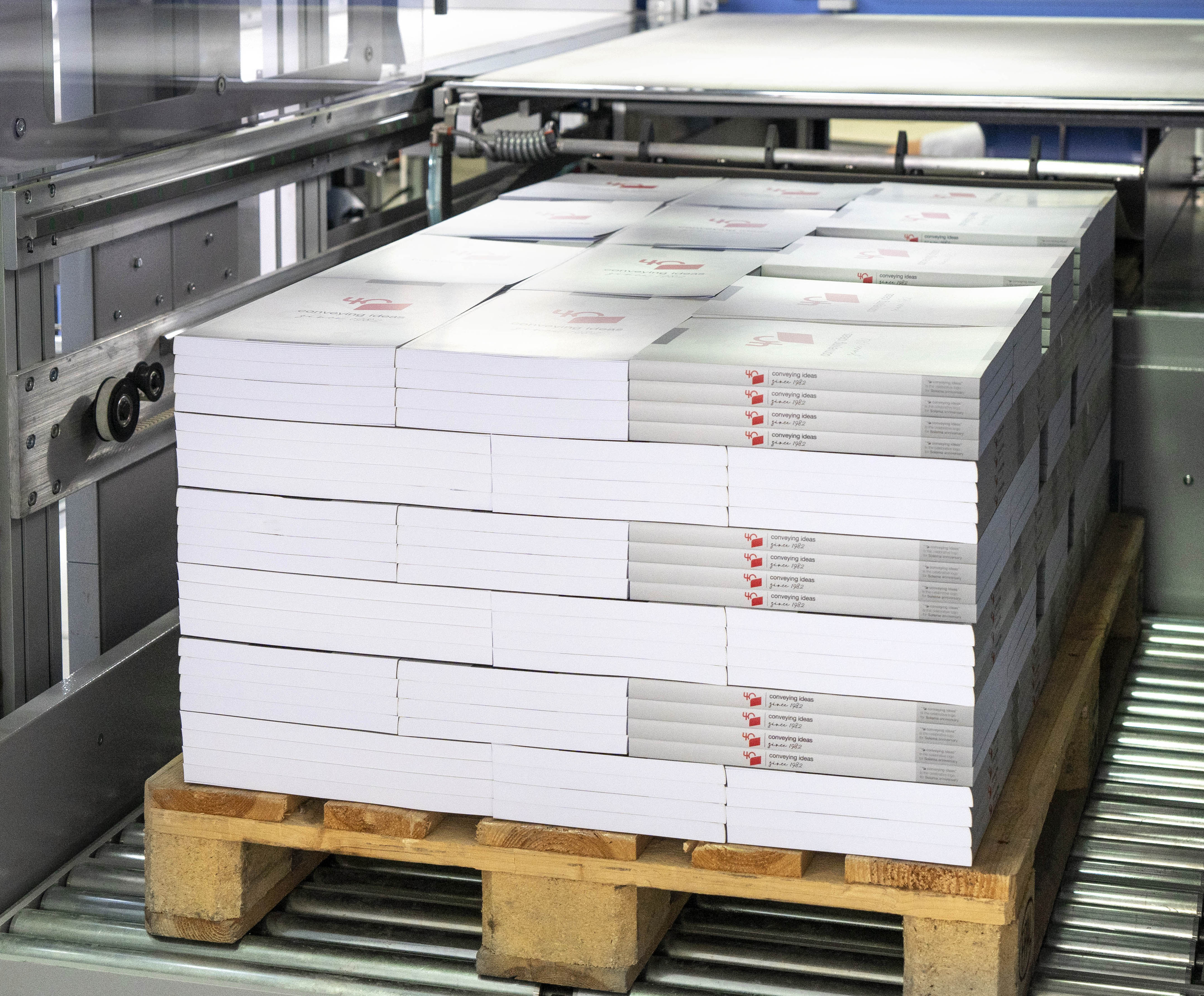 PLUTON can be used to palletize: Hard and Soft cover books, sewn and glued bookblocks, magazines, catalogues and phone directories, shrink wrapped piles or bundles, carton boxes, strapped / blocked signatures, newspapers.