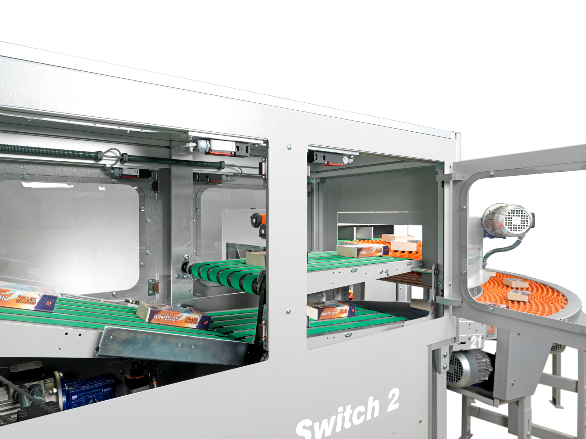 Single books or piles can be diverted 90° right or left or run straight through from the Cruiser. The machine is available in different versions depending on the size of the product to run.