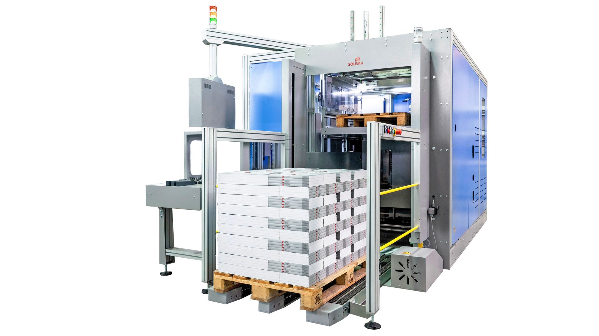 Bradford & Bigelow (B&B), a leader in the North American book manufacturing industry, has recently made a $7 million investment in automation and advanced production technology to enhance efficiency and maintain its competitive edge. As part of this initiative, the company has integrated Solema’s Pluton Palletizing System, a cutting-edge solution designed to streamline material handling and improve workflow across its high-volume operations in its Newburyport, Massachusetts facility.