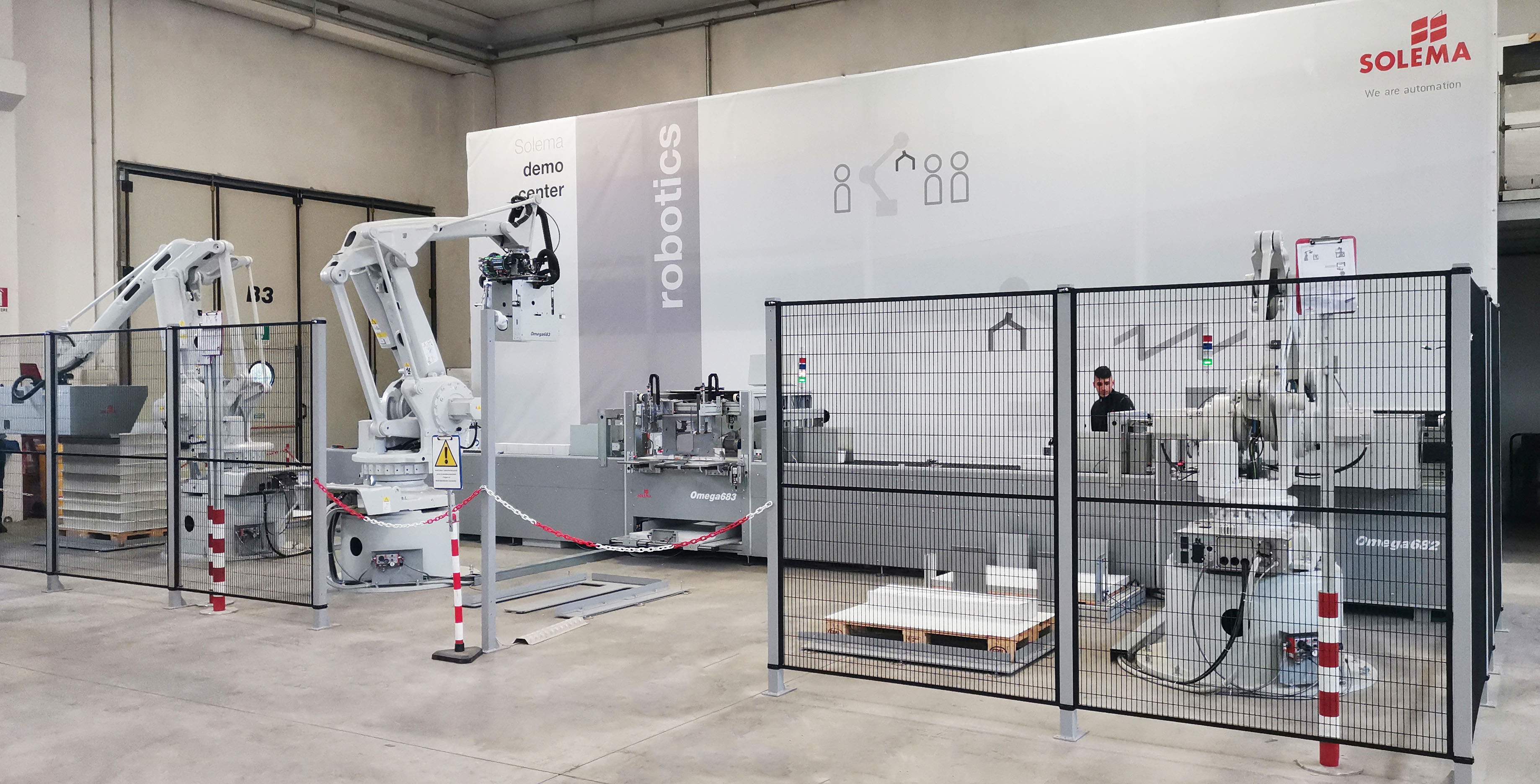 Solema presenta Robotics Demo Center, uno showroom permanente all’interno della nostra sede di Pedrengo, interamente dedicato alla robotica applicata all’automazione industriale - in particolare pallettizzazione e depallettizzazione - per il settore delle arti grafiche e del packaging.