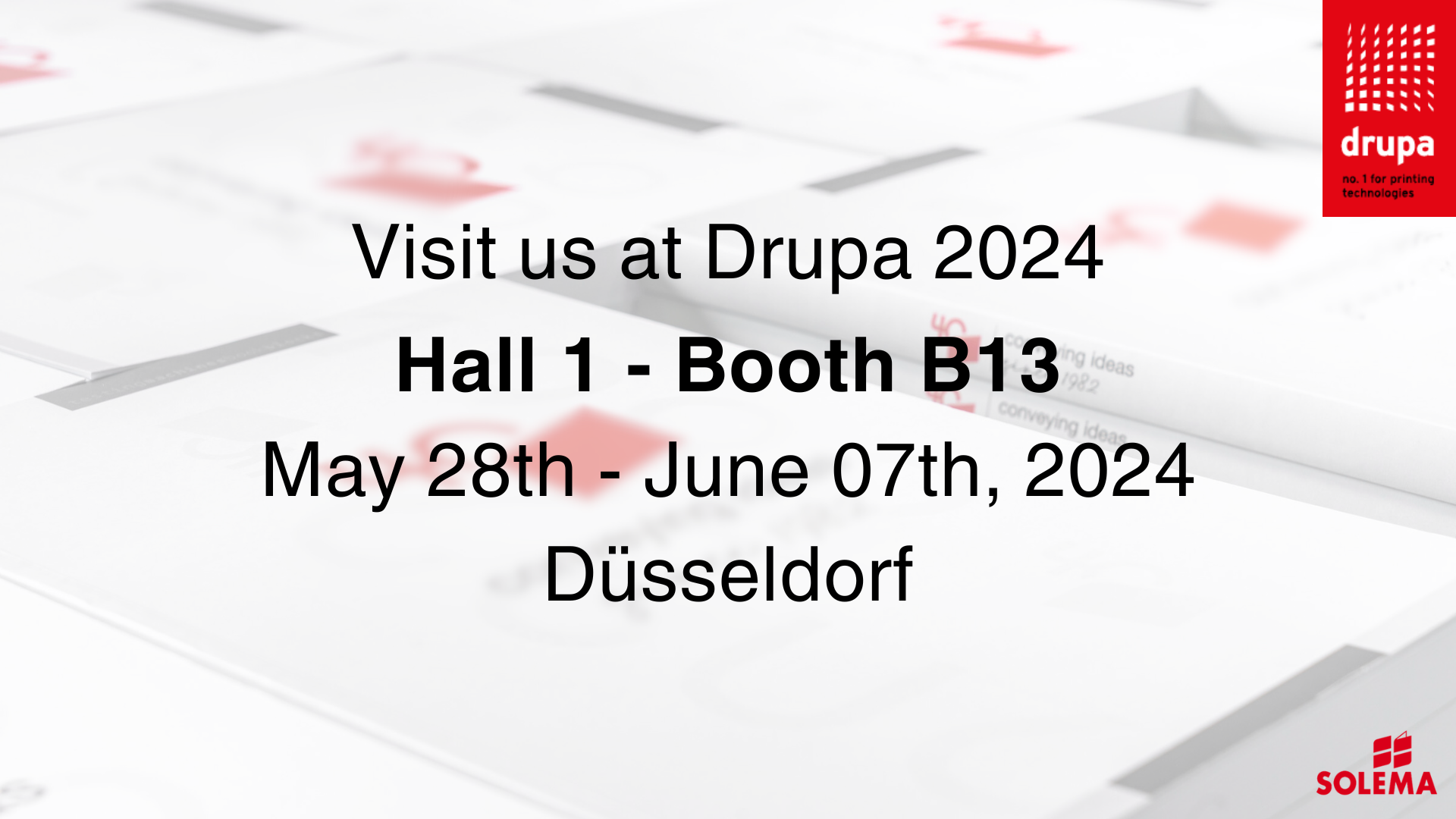 Drupa, the most important world exhibition of graphic arts and printing technologies, returns from 28 May to 7 June. The event, which will be held in Düsseldorf, Germany, returns in a big way after an 8-year absence. As always, Solema will take part in the event with an innovative stand. We are waiting for you!