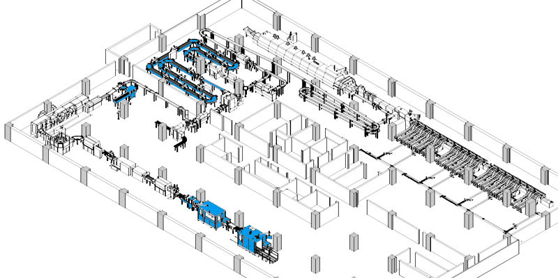 1) il Buffer System (sistema di accumulo) dinamico: permette di assorbire le diverse velocità di produzione delle macchine, così come di gestire i diversi tempi di rilascio tra di loro. Il sistema di accumulo dove i prodotti sono impilati aiuta anche l'asciugatura della colla in spazi ristretti. Il controllo dinamico del Buffer System permette il carico e il rilascio dei prodotti quando richiesto per assicurare un flusso di produzione continuo senza perdita di colpi.